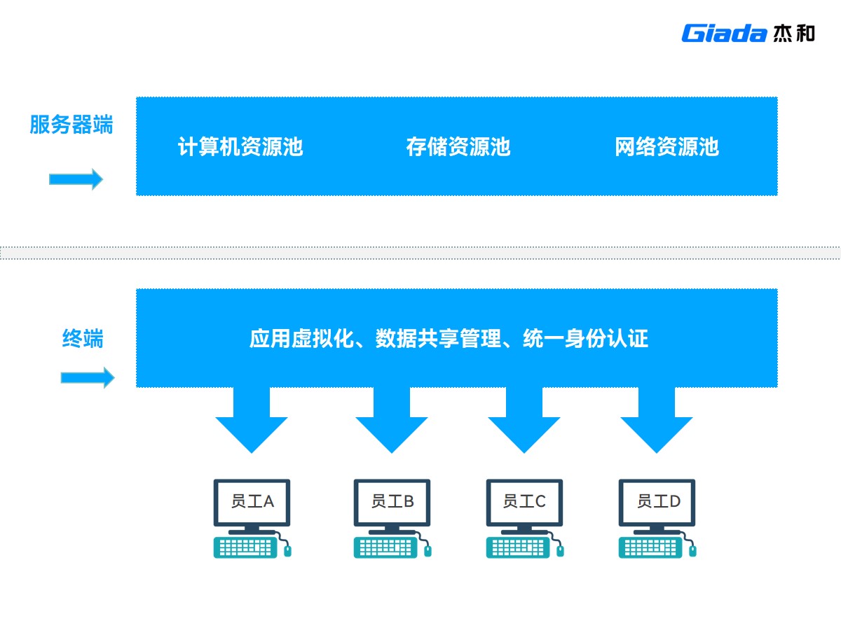 采用CA88(中国区)有限公司科技云终端方案后,该证券公司员工电脑的办公数据集中存储在服务器上,而不是分散在各个终端设备上,这使得数据更容易受到保护和监控,确保了数据的安全性,减少数据泄露的风险,降低了外界黑客攻击窃取信息的可能性。