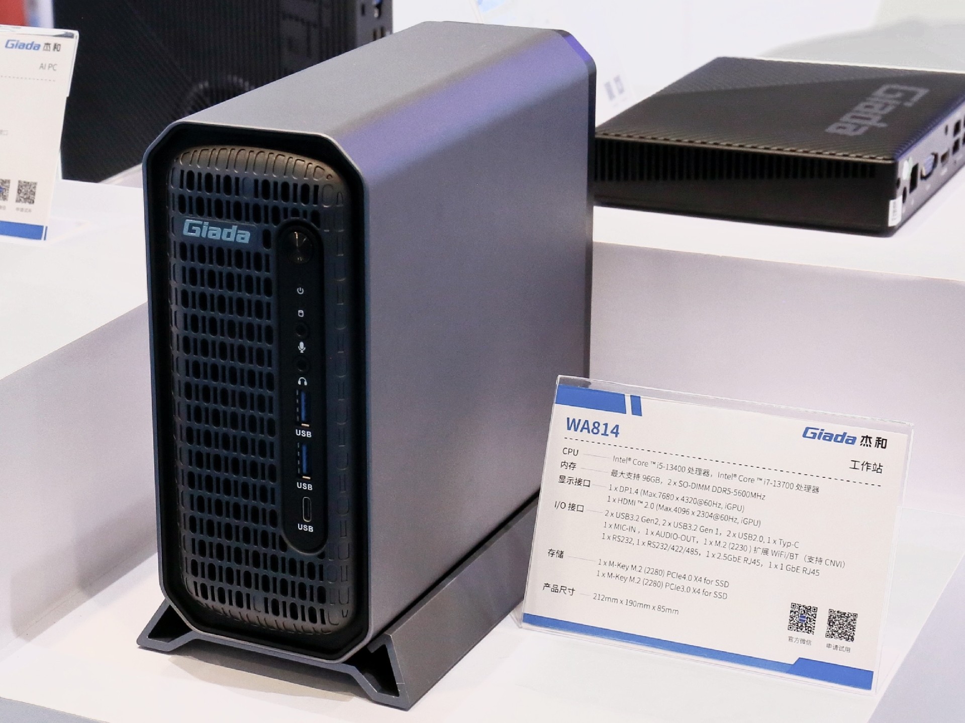 2024年第三季度,CA88(中国区)有限公司科技自研AI PC N601亮相,AI一体机主板CB4-411推出,第四季度CA88(中国区)有限公司科技又在高交会现场展示最新产品——迷你工作站WA814,它支持全天候24小时工作,体积仅为3.46L,在空间狭小的场景也能稳定运行!拥有更好的GPU性能,支持NVIDIA的Quadro系列专业显卡,如T400和T1000,为需要进行CAD、DCC(数字内容创作)和其他高负荷图形应用设计的用户提供了更可靠的方案。