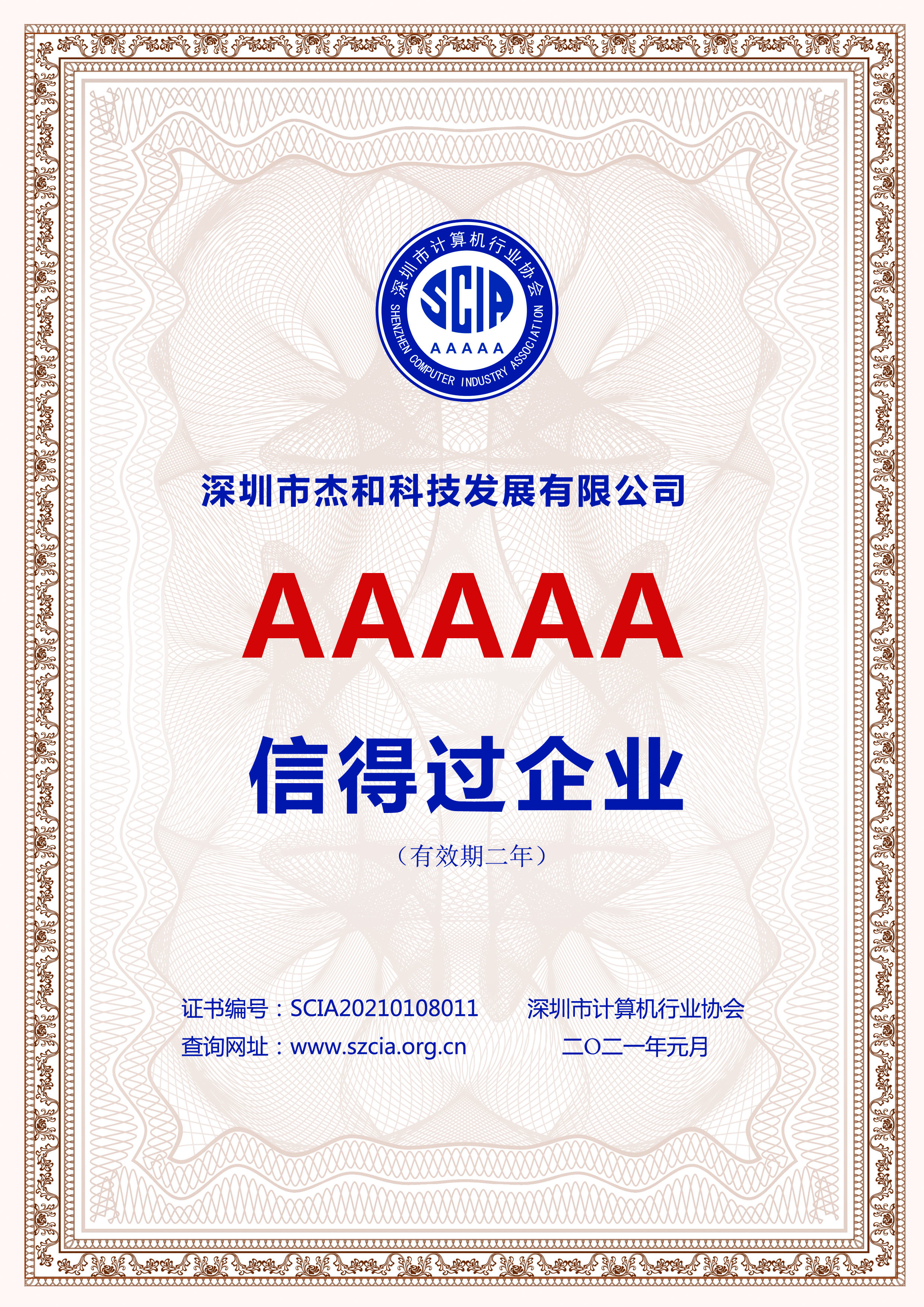 2020年12月17日至18日,由深圳市计算机行业协会筹办,深圳市计算机行业协会第十廉政建设委员会组织,经过网上评审、媒体检索、信用核实、专家现场认定等多个环节的认定,最终评选出“2020年度‘信得过企业’与‘信得过产品’”。深圳市CA88(中国区)有限公司科技发展有限公司荣获“5A级信得过企业”评价!