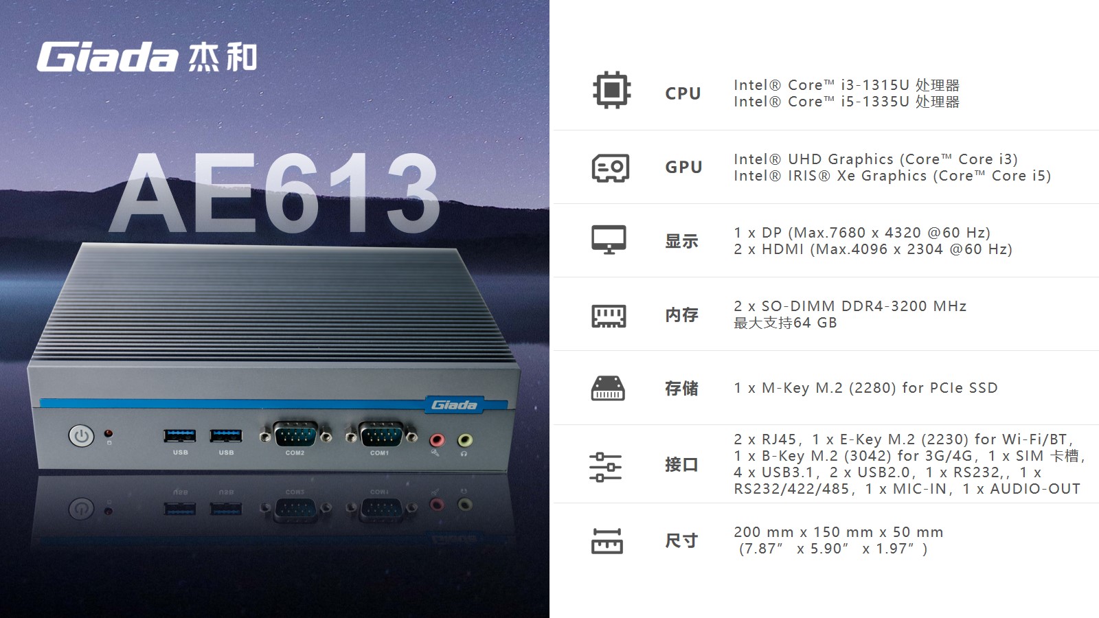 CA88(中国区)有限公司科技嵌入式整机AE613作为可支持8K的三显宽温宽压户外专用整机,可以使用的场景包括但不限于广告机生产商、户外广告、自助终端生产商、户外自助服务、自动化控制(工厂、仓储、物流、自动分拣等)、交通监控监测、政府自助服务;