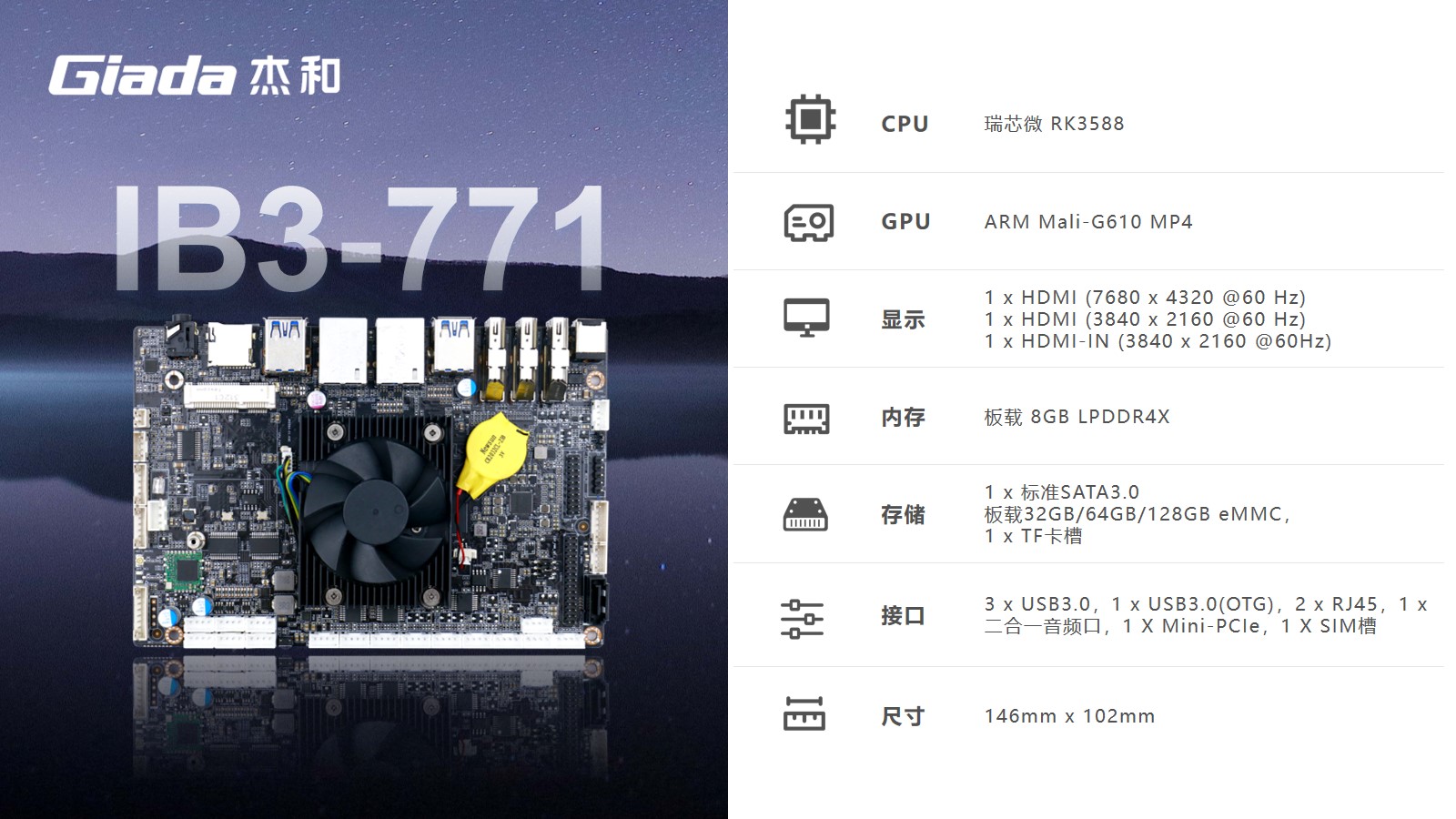 CA88(中国区)有限公司科技嵌入式主板IB3-771是8K人工智能主板,拥有轻算力的它可用于机器人、边缘计算、智能NVR、智能汽车、智慧大屏、AR/VR、ARM PC、智能自助终端等领域,还可用于监控、工业、餐饮、智能交通、文娱产业等对超高清视频需求旺盛的行业;