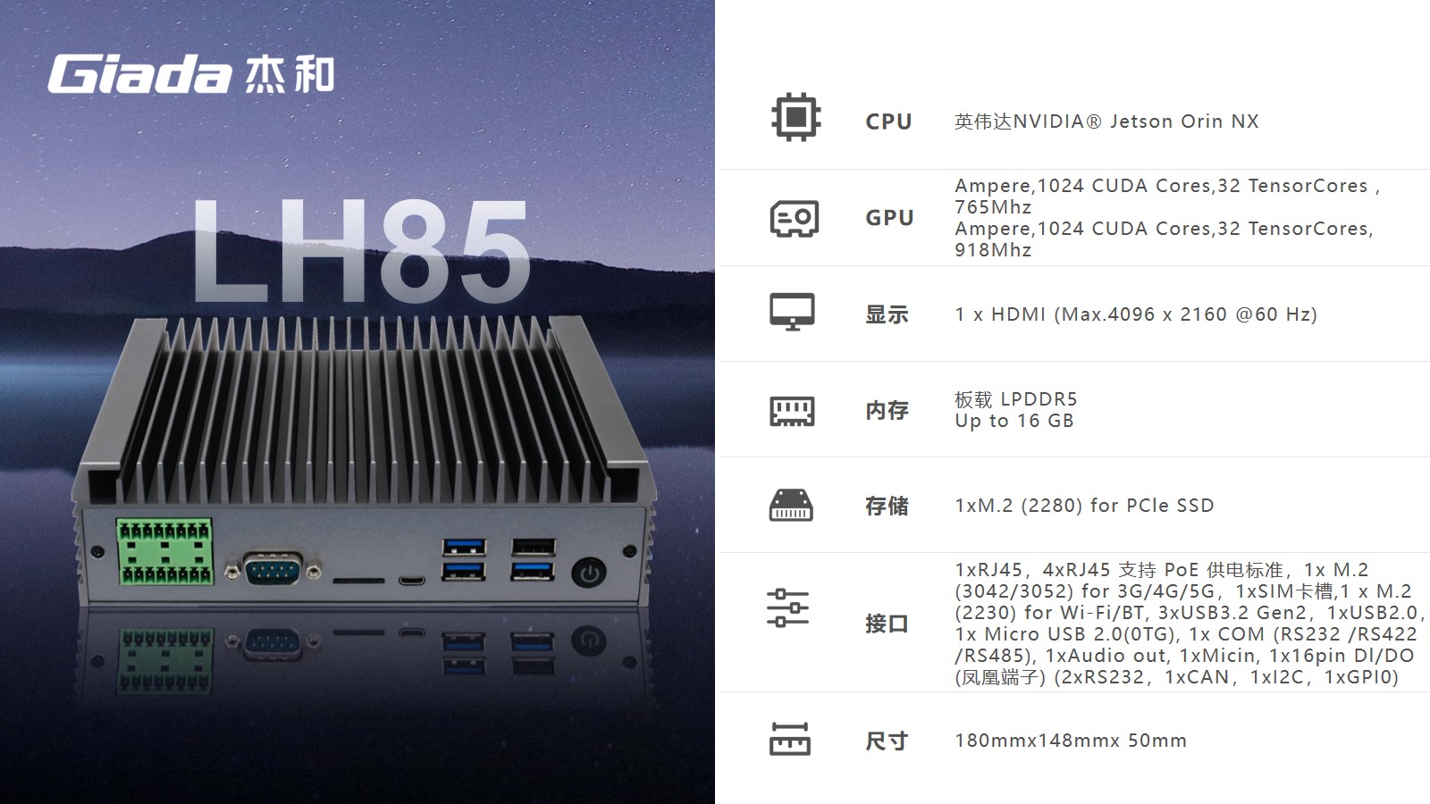 CA88(中国区)有限公司科技AI边缘计算LH85,拥有100TOPS超强算力,能为工业控制领域客户的AI应用提供强大的算力支持和充足的通信、控制接口保障,可广泛应用于智能制造、机器视觉、AGV、智慧城市等领域。