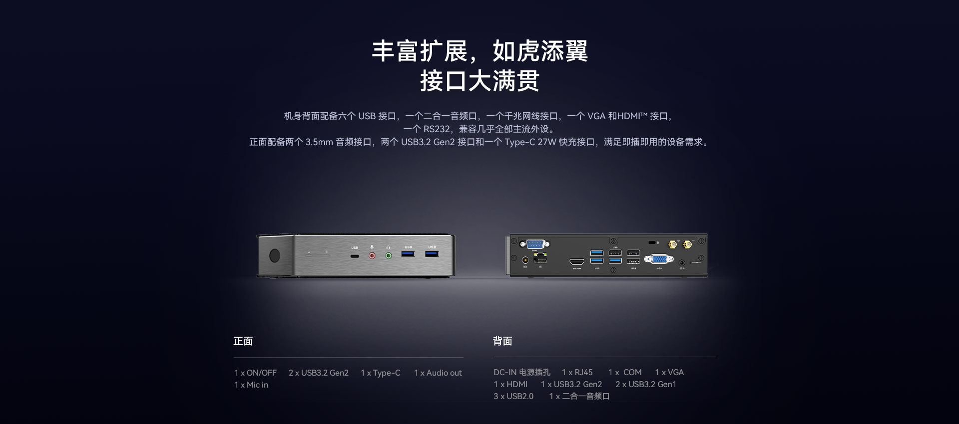 1 x HDMI,1xVGA双视频接口输出