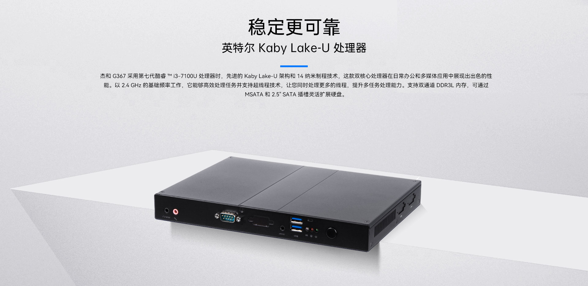| 接口 | 1 x 2.5" SATA扩展HDD/SSD 1 x Mini-PCIe 扩展mSATA | |
