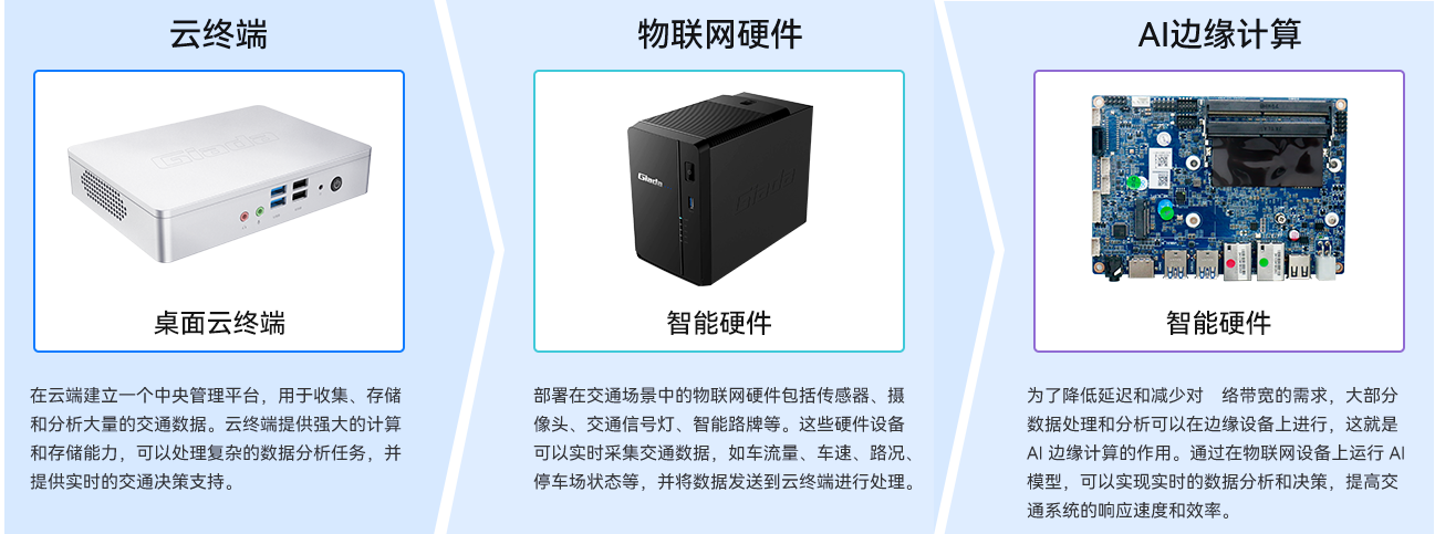 智能交通解决方案基于云终端、物联网硬件和AI边缘计算的组合,可以提供高效、智能化的交通管理和服务。